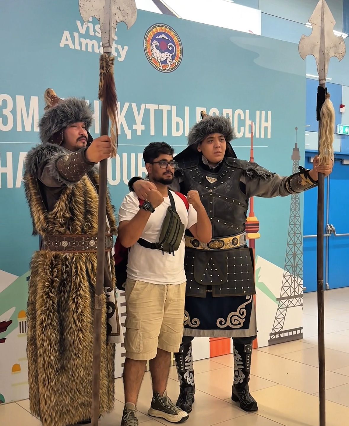 Праздничное настроение поддержат девушки в национальных казахских платьях и могучие батыры, ростом под два метра. Улыбки, искренние пожелания и возможность сфотографироваться в яркой фотозоне с традиционными костюмами — всё это создаст атмосферу праздника с первых минут пребывания в Алматы.