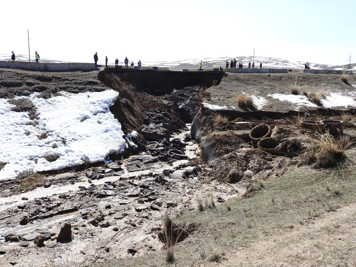 Қарқынды еріген қар суының қысымы салдарынан 1960–1970 жылдары салынған су өткізгіш құбырдың 4–5 буыны бұзылған. Нәтижесінде құбыр аузы бітеліп, жолдың жер төсемі бүкіл ені бойынша шайылды. Опырылған аймақтың ені шамамен 12 метрді, тереңдігі 10 метрді құрайды. 150 м² асфальт жамылғысы бүлінген.