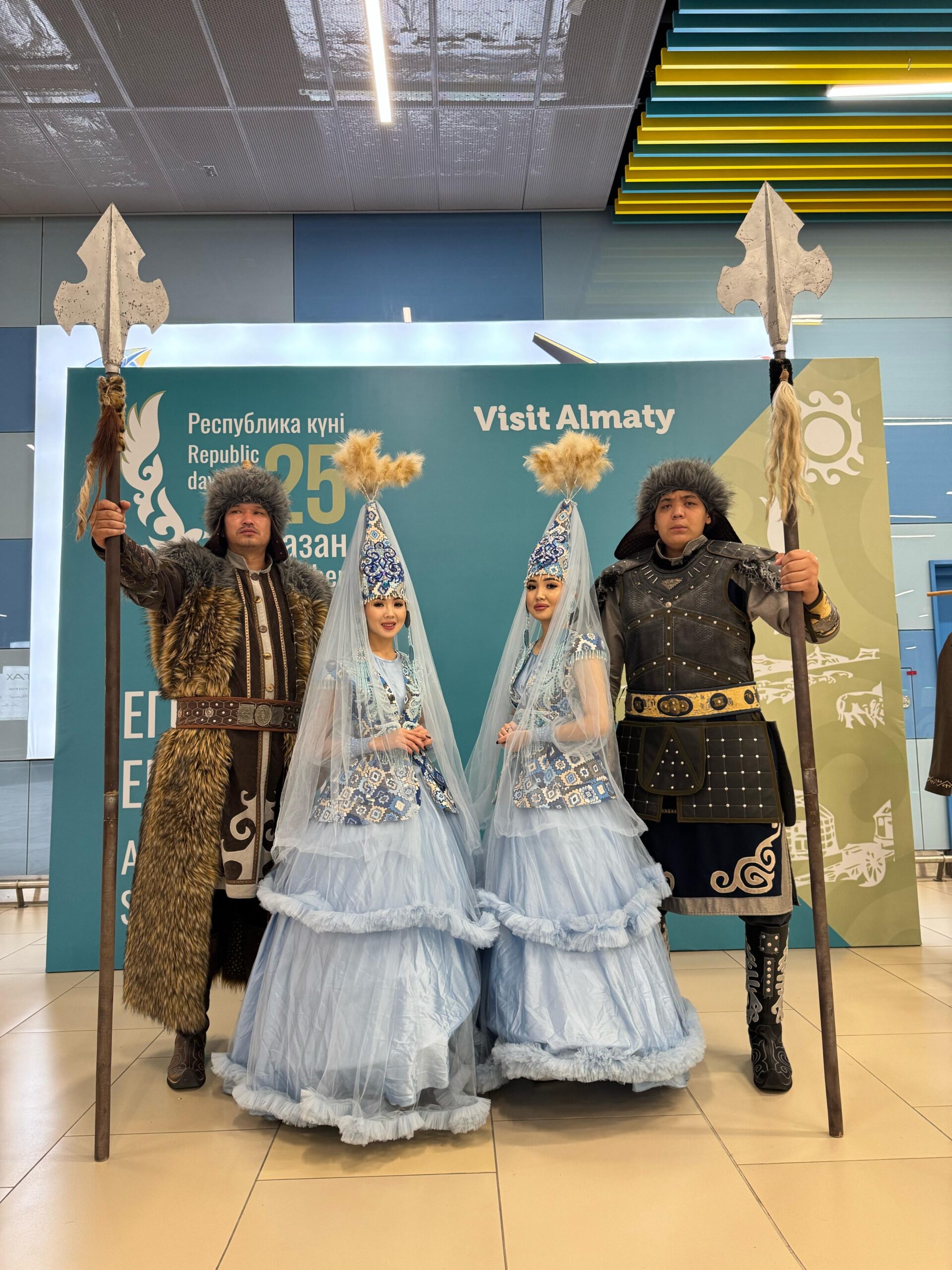 По прибытии в терминал международных рейсов иностранные гости получили памятные сувениры: брендированные чехлы для паспорта, сладости с национальными мотивами и экологичныебамбуковые стаканы с айдентикой города. Такой жест позволил сразу создать праздничное настроение и познакомить туристов с культурным обликом Алматы.
