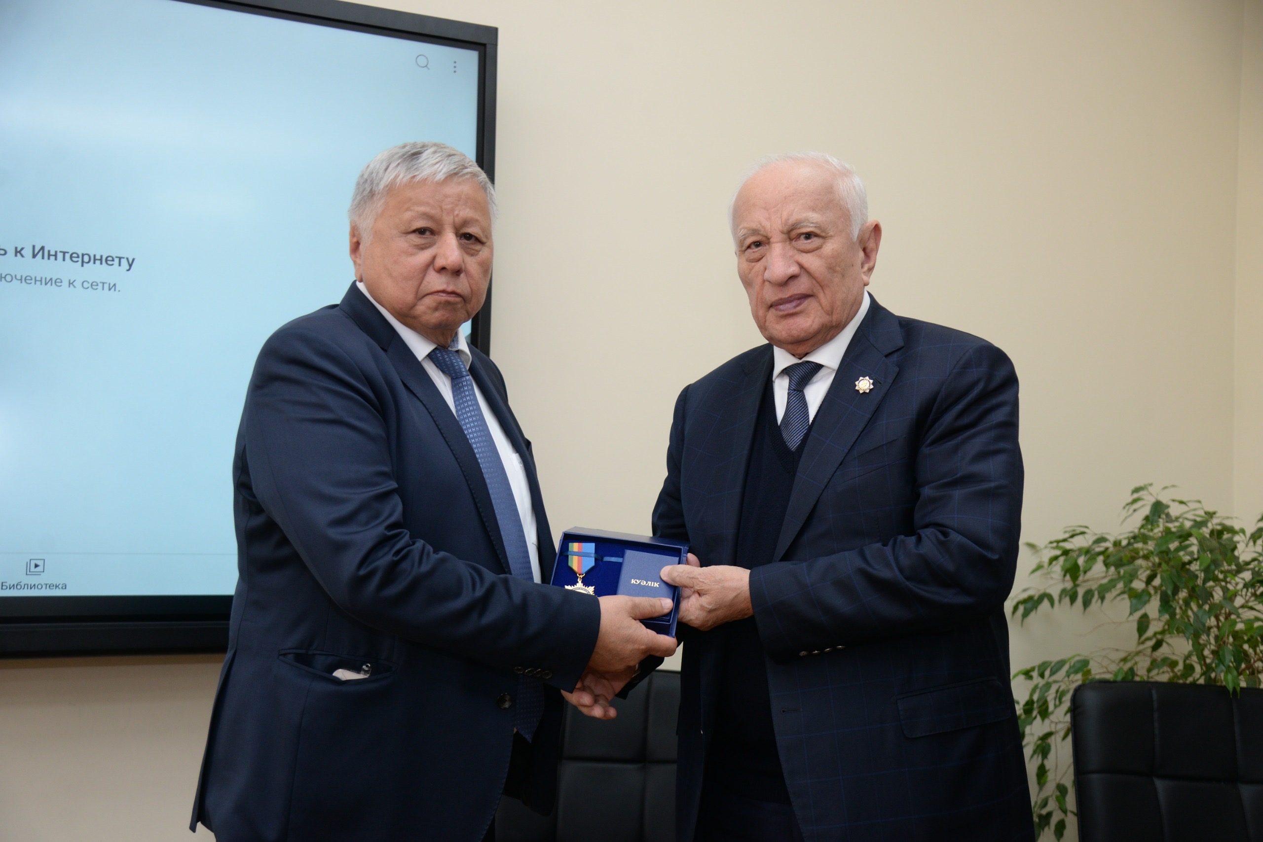 Жиынның құрметті қонағы – Міржақып Дулатұлының жиені, аудиторияның жасақталуына демеушілік жасаған «Мектеп» баспасының бас директоры Ерлан Сатыбалдиев университет ұжымына ағартушы есімін ұлықтауға бағытталған бұл бастама үшін алғысын білдіріп, біртуар тұлға ұрпақтары атынан ЖОО басшылығына және салтанатты жиынға қатысқан мәртебелі қонақтарға «Міржақып Дулатұлы» медалін табыс етті.