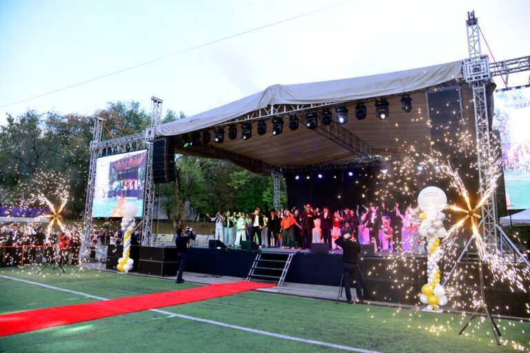 Студенттер мен қонақтар кеш соңында ұйымдастырылған би кешінде көңілдерін көтеріп, ерекше атмосферада әдемі уақыт өткізді. Пайдаланылған жарық эффектілері, аспандаған әуе шары мен салтанатты отшашу шараның ерекше көркемдігін арттырды.