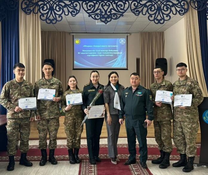 Ұлттық ұланның Қарағанды қаласындағы 6505 әскери бөлімінде әскери қызметшілерге қазақ тілі бойынша B1 деңгейіндегі сертификаттарды табыстау рәсімі өтті. Мемлекеттік тілді меңгеруге бағытталған арнайы курстарды аяқтап, қорытынды емтиханды сәтті тапсырған сарбаздар мен офицерлер осы сертификаттарға ие болды, деп жазады qaznews .